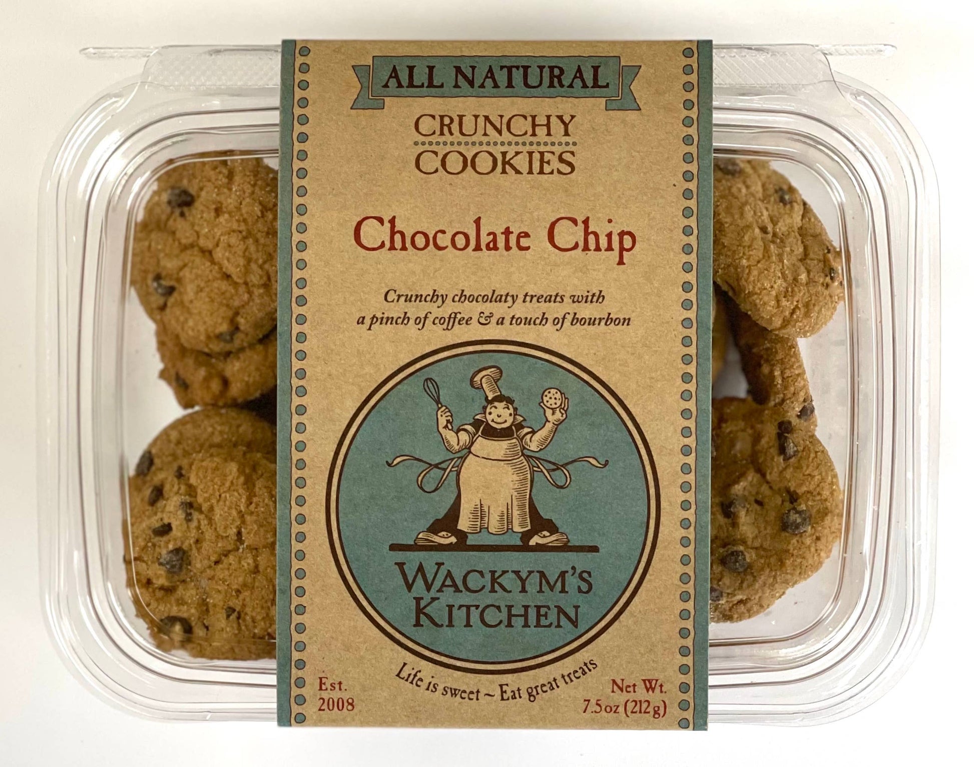 Wackym's Kitchen all-natural crunchy chocolaty cookie treats are made with a pinch of coffee & a touch of bourbon plus real butter, cane sugar, unbleached/unbromated flour & cage-free eggs. No preservatives & nothing artificial!