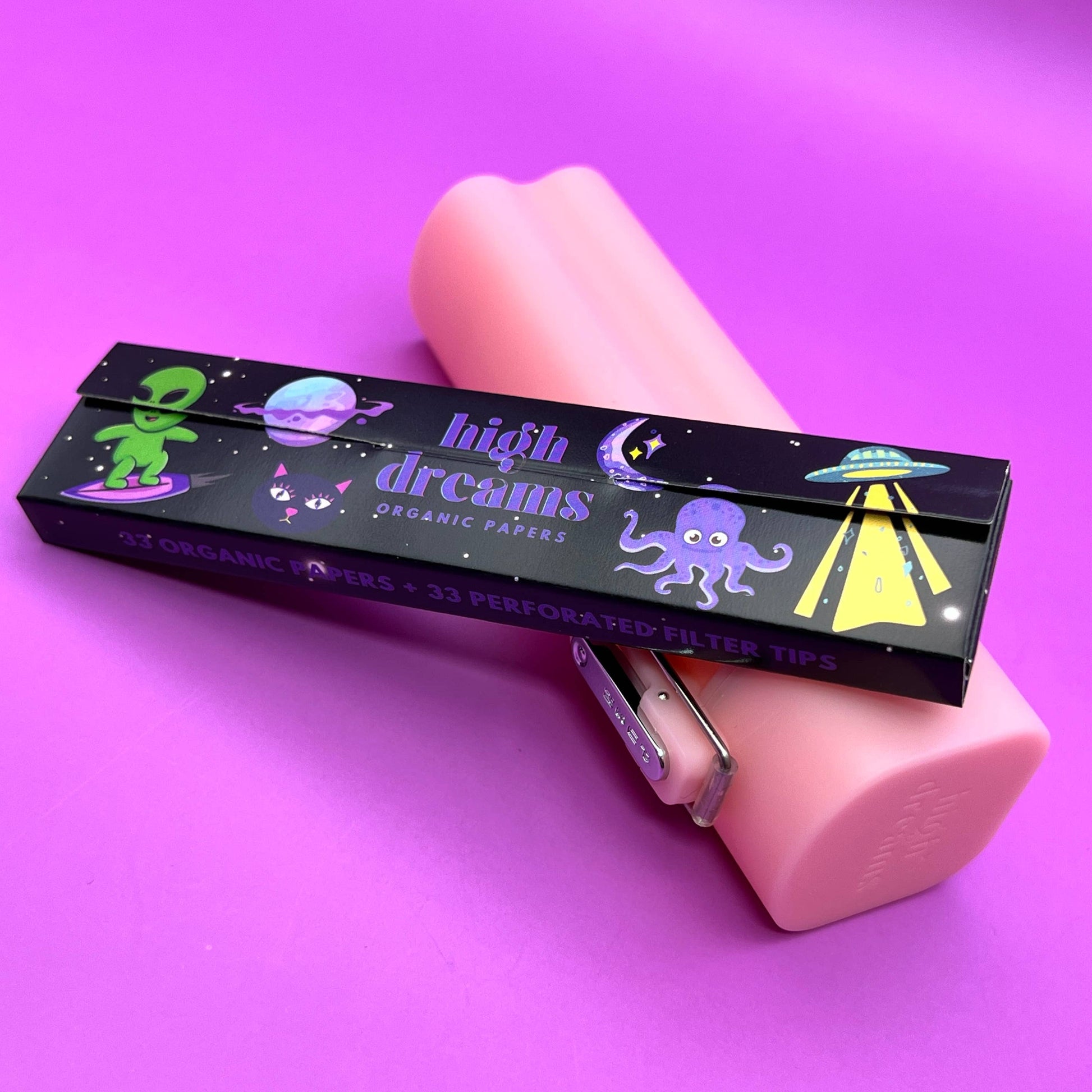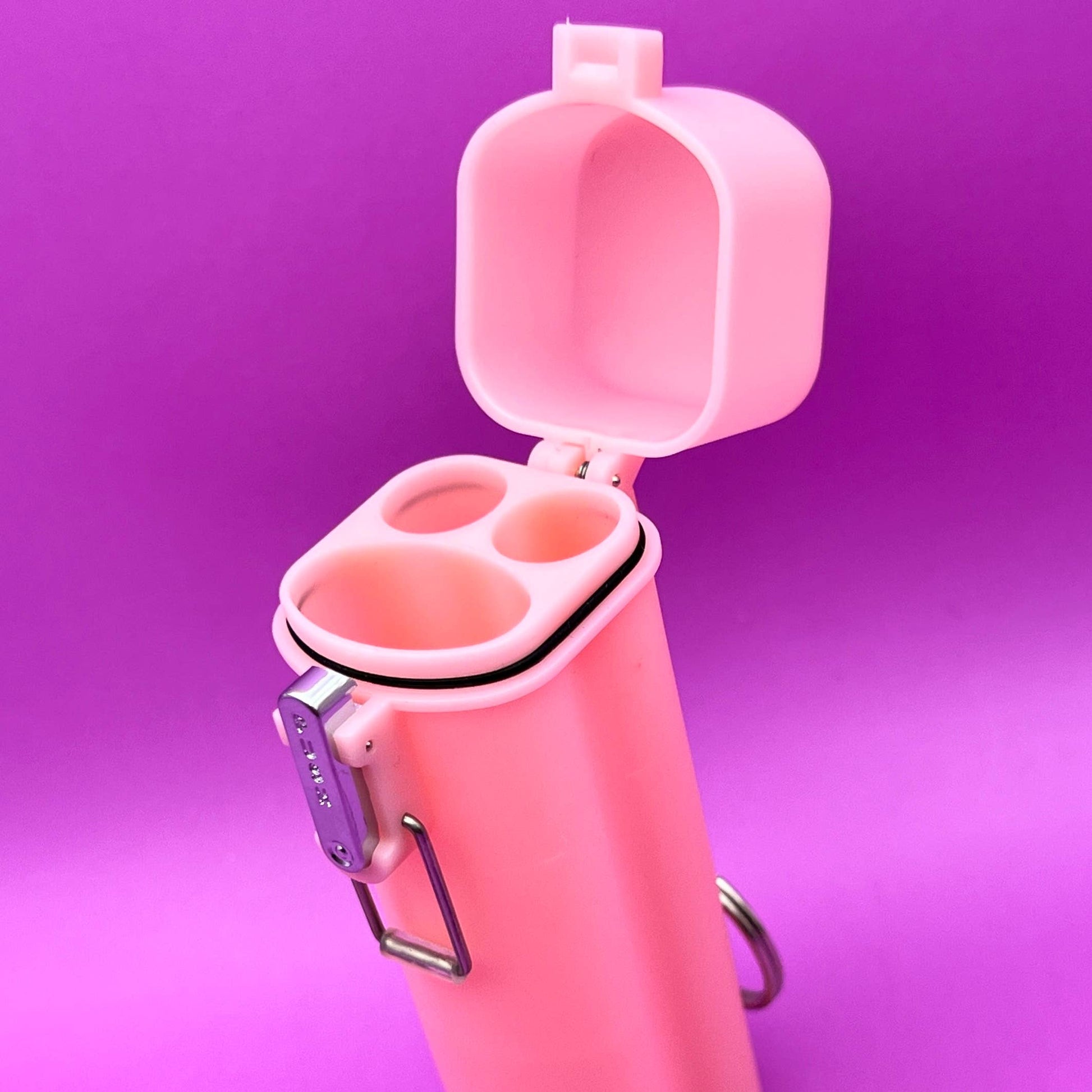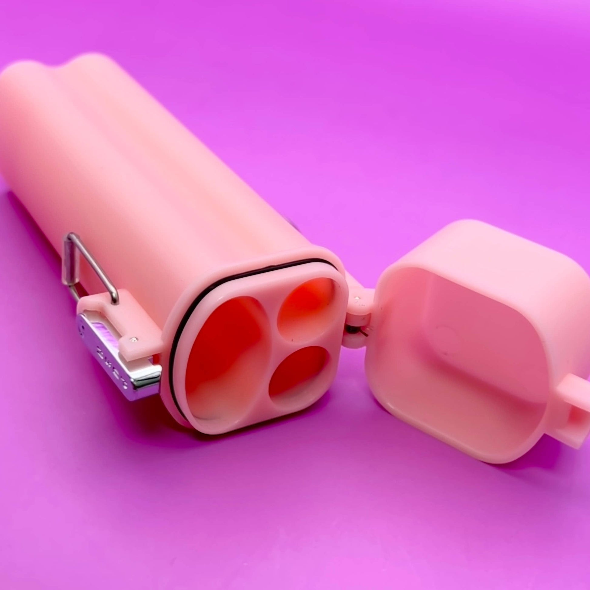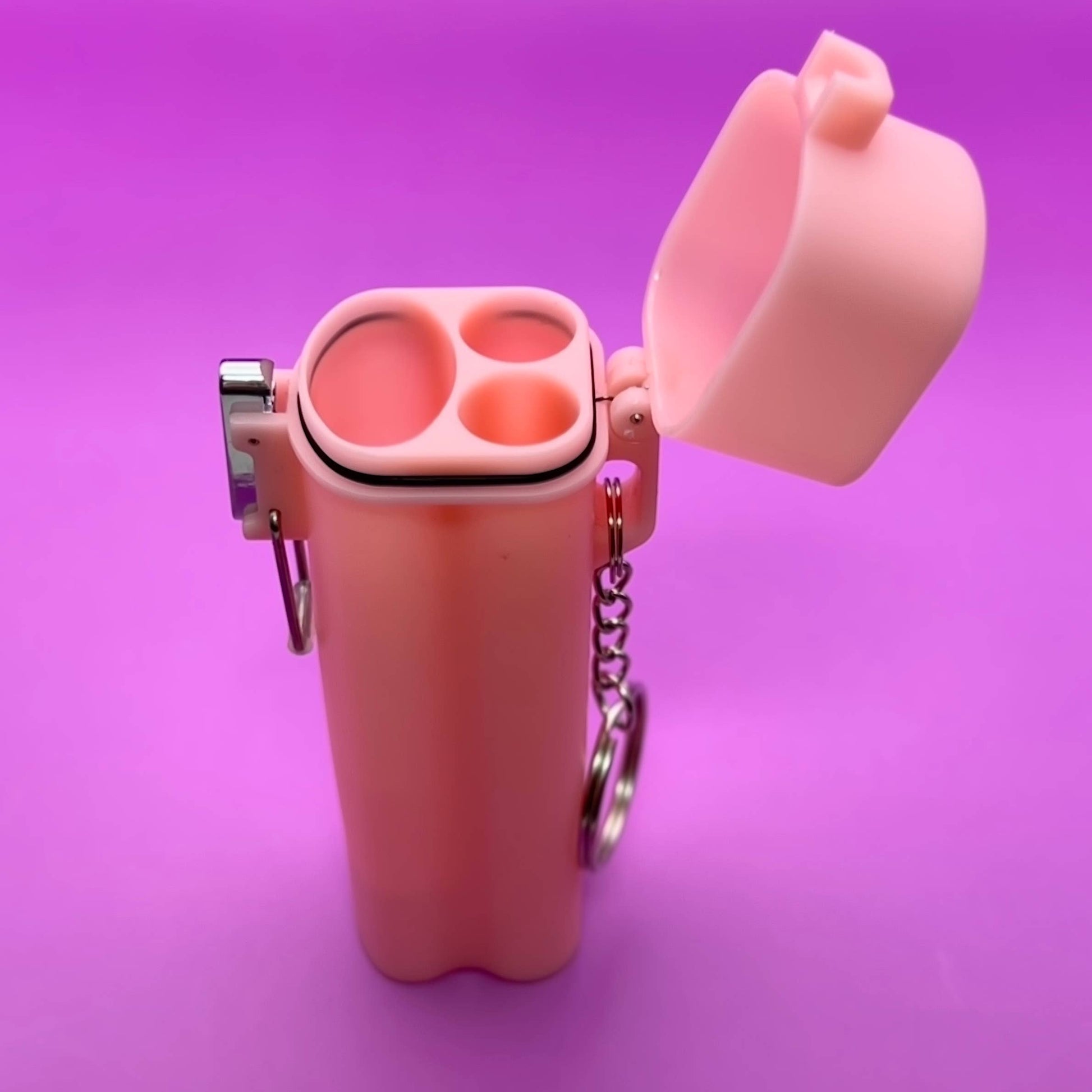 Our Flip-Top Case - the ultimate solution for smokers on the go, crafted from recycled plastic to support sustainability without compromising on quality. This sleek kit includes a flip-top case with two holes for easy access, plus a compartment for BIC® lighter. Engineered to be odor-resistant and water-repellent, it's your perfect companion for travel, hiking, or leisurely beach days.