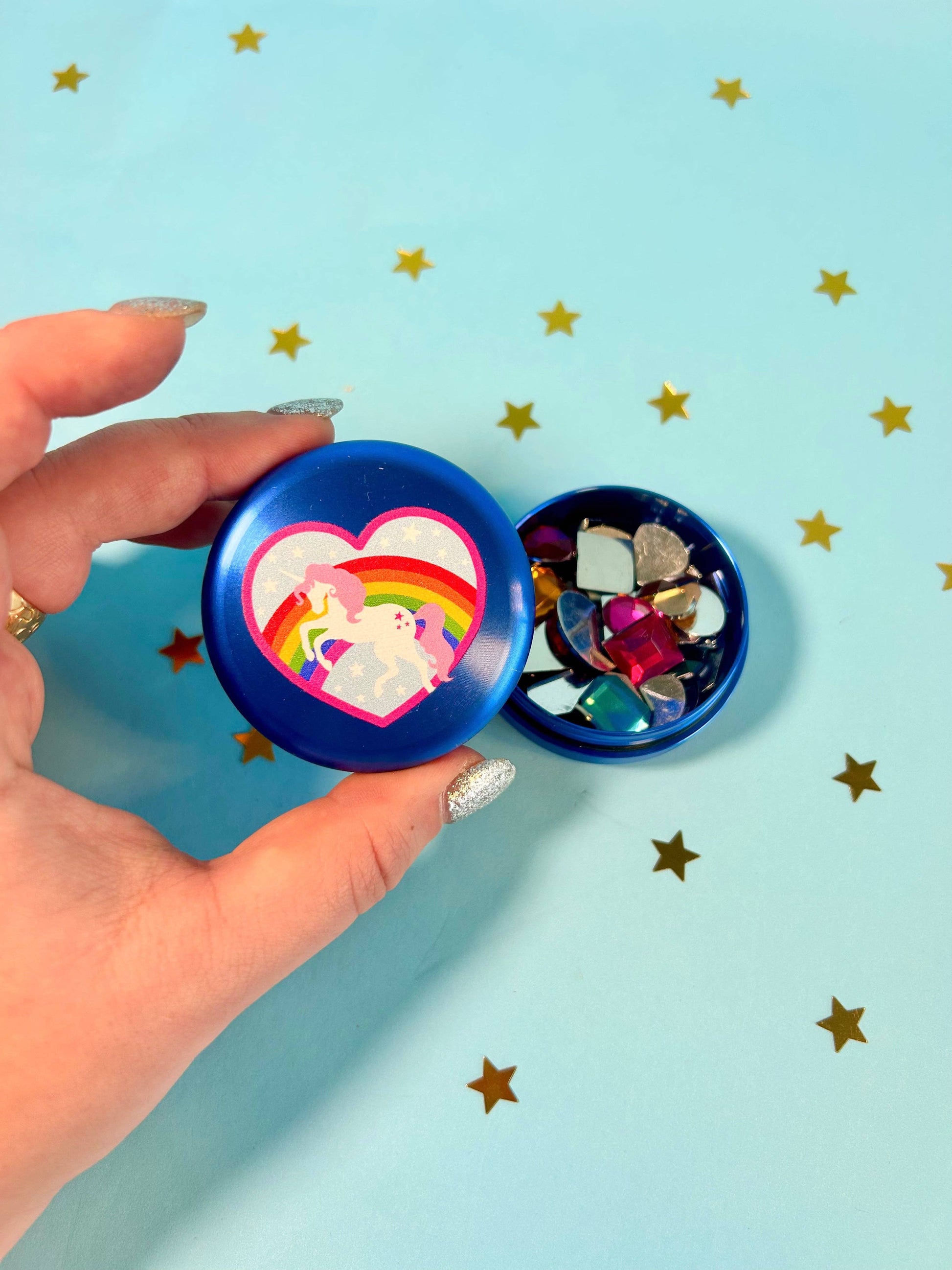 Unleash the magic of herbal refreshment, and none of the scent, with our smell-proof Unicorn Stash Jar! Whether you want to store some ground oregano, a few edibles, or a mysterious mix of lactaid and rhinestones, this lil jar gets the job done!